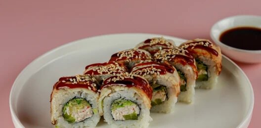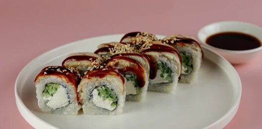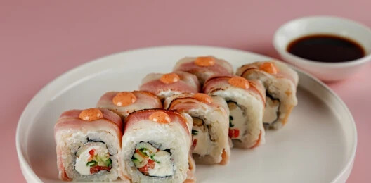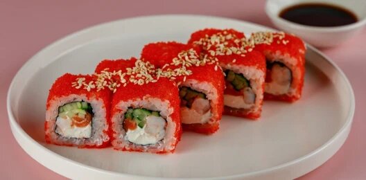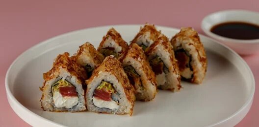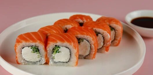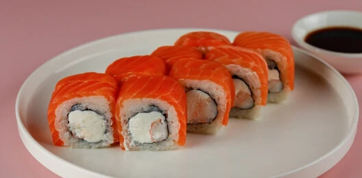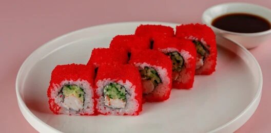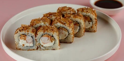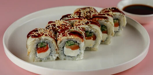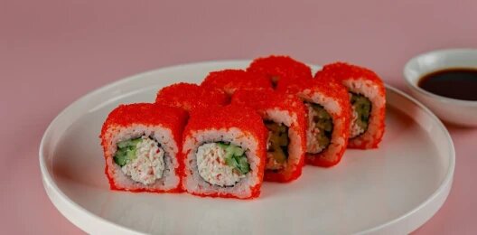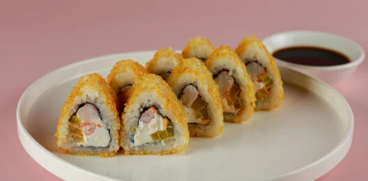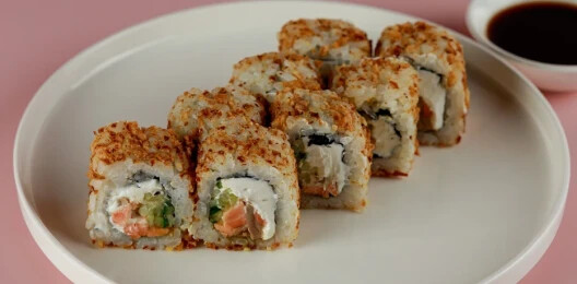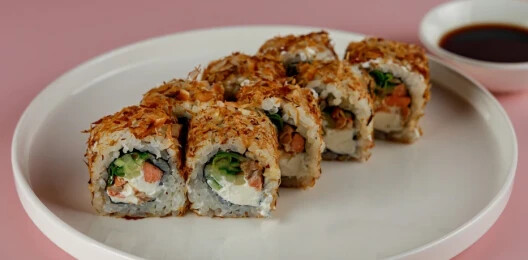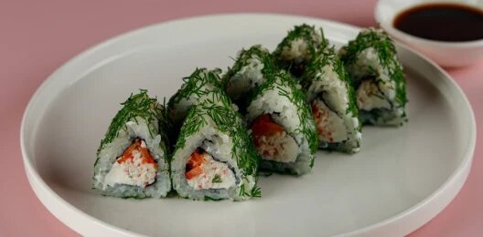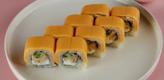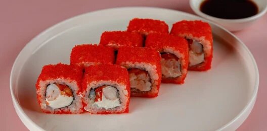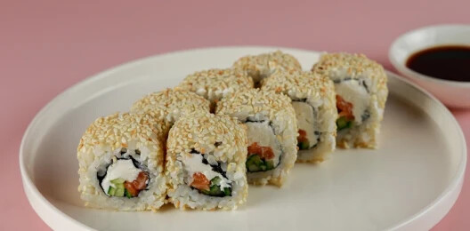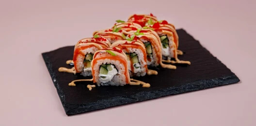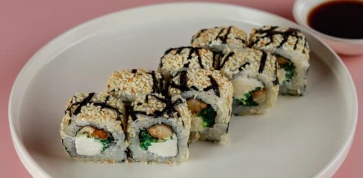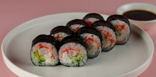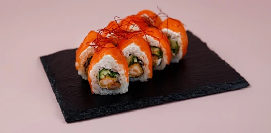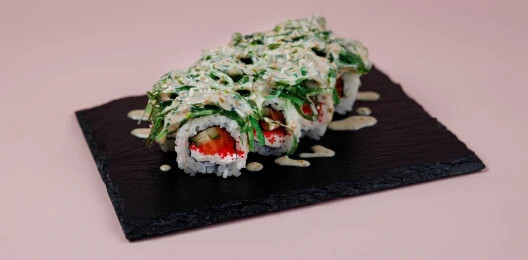 Креветка, Лосось, Острый Сыр, Салат Айсберг, Нори, Рис.