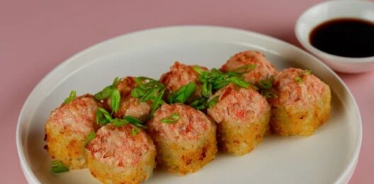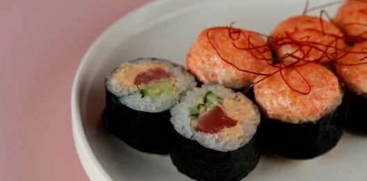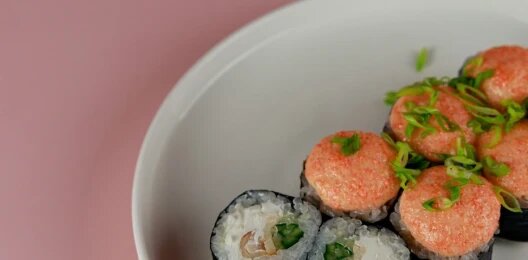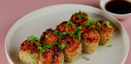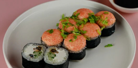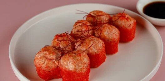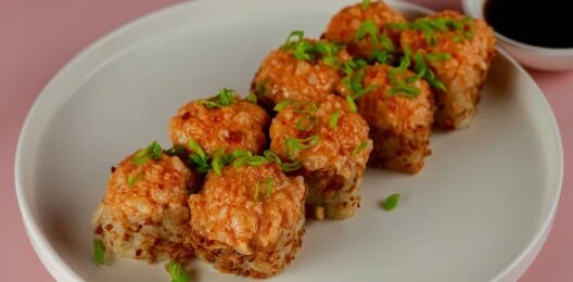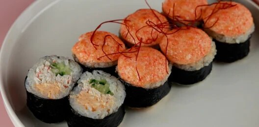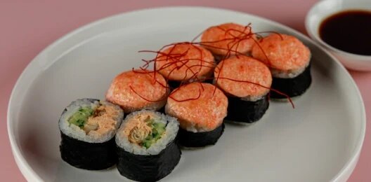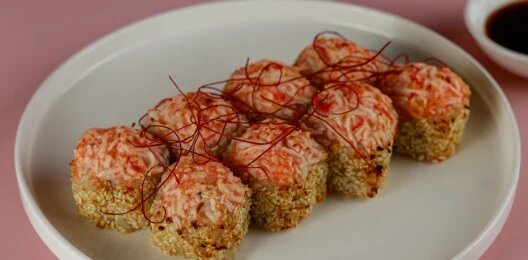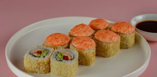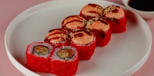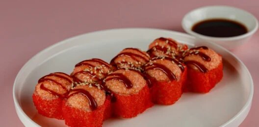 Лосось Терияки, Нори, Рис, Соус Яки , Нори, Рис, Соус Яки , Сливочный Сыр.